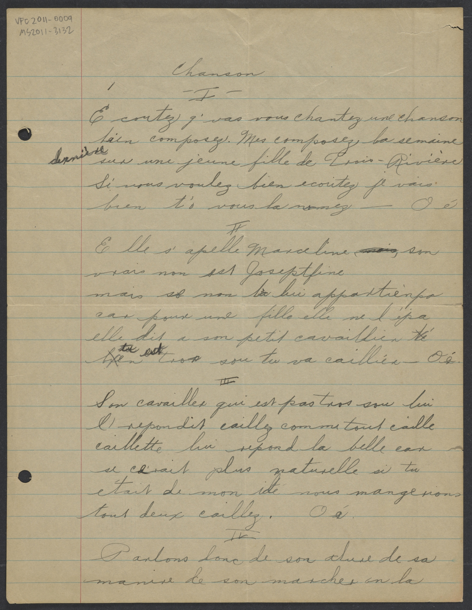 Ecoutez q’vas vous chantez une chanson [first line] (MS2011-3132)