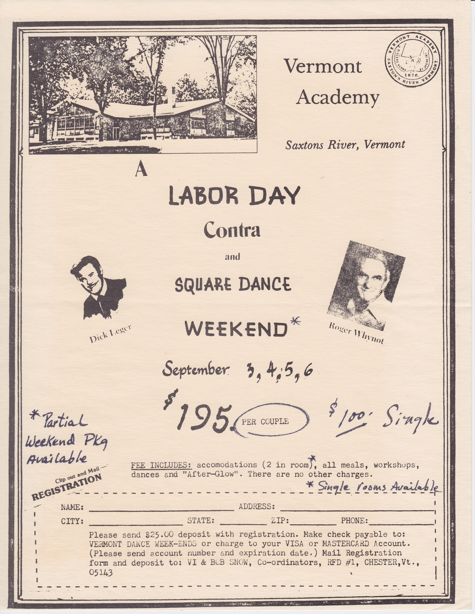 “A Labor Day Contra And Square Dance Weekend" flyer (MS2011-3304),” Vermont Folklife Center Digital Collections, accessed December 16, 2025, https://www.vtfolklifearchive.org/collections/items/show/453.