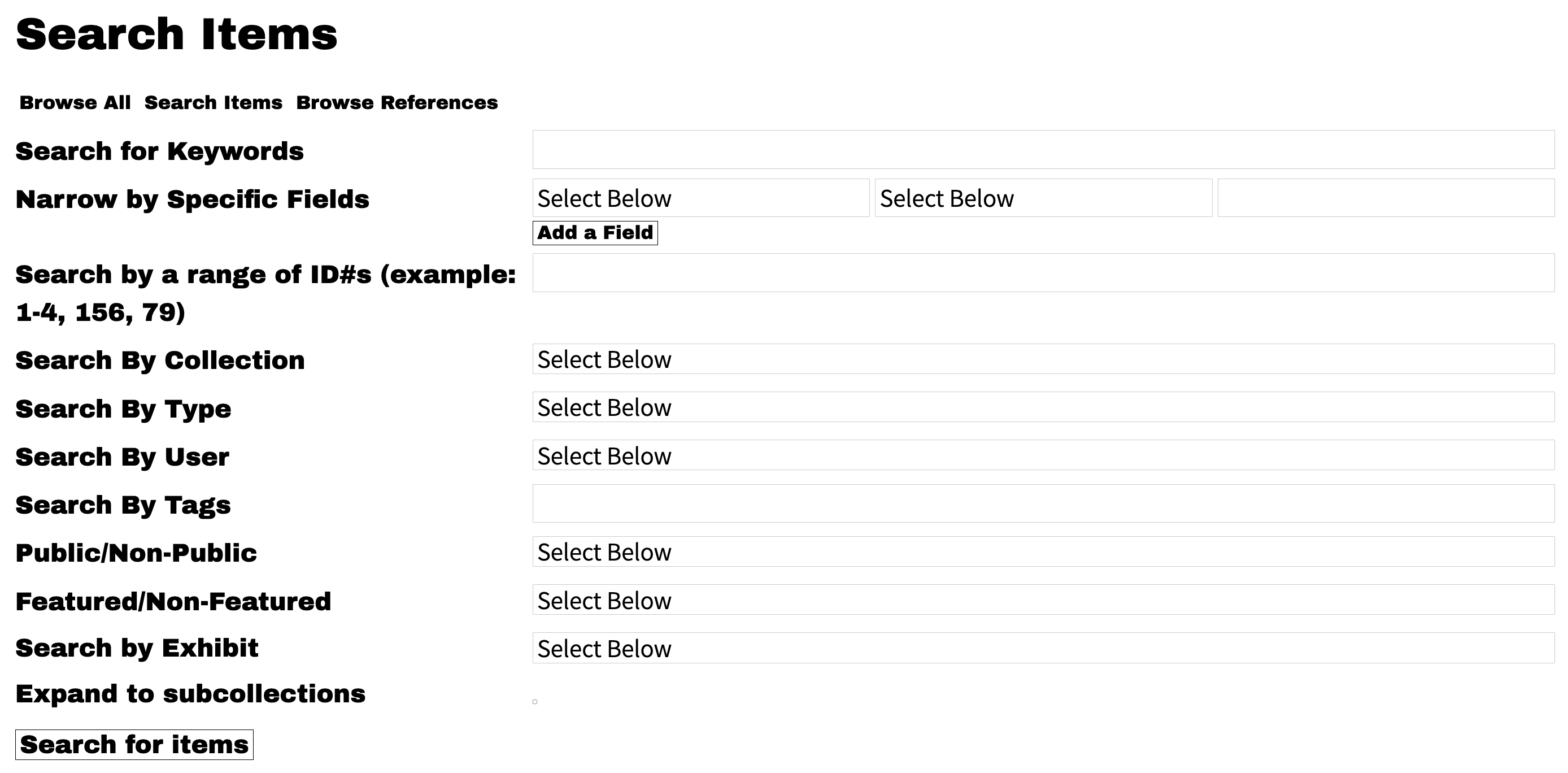 With Advanced Search one can execute a variety of complex searches of the database focused on one or more specific database fields, as well as conduct Boolean searches across them.